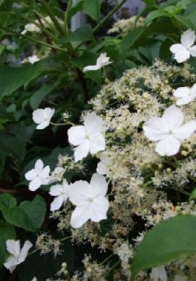 Self clinging deciduous Hydrangea. Excellent on a shady wall with large white flower heads to 25cm across in June. Can be grown as a shrub. May need to be supported initially before the aerial roots start to cling to the wall. It can also be grown up a large tree.