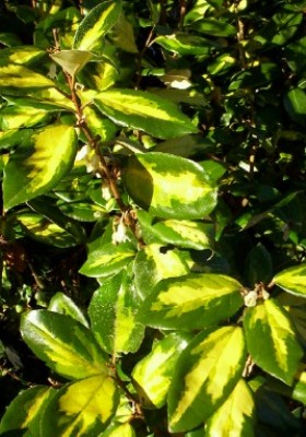 Vigorous evergreen shrub, with leaves that start silver and become marked with yellow and pale green in the centre. Creamy white very fragrant flowers produced in autumn. An excellent plant for hedges and shelter belts in exposed situations, including coastal.