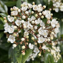 This is a particularly good form of this popular evergreen winter flowering shrub. Glossy green leaves and large heads of white flowers from late autumn to early spring. An excellent hedging plant that will also tolerate coastal conditions.