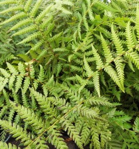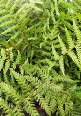 Dicksonia are evergreen tree ferns, but may be deciduous in cold areas, with a stout erect, trunk-like rhizome clothed in fibrous roots. D. antarctica grows slowly to 4m in height, with a reddish-brown stem and a terminal rosette of arching, deeply divided, glossy dark green fronds to 3m in length.