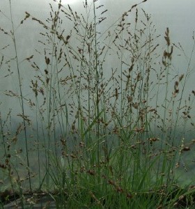 Perennial grass that dies down in the winter. Metallic blue-green leaves and yellow autumn colour. Many reddish flowers produced on much branched flower spikes in early autumn - 1 metre. Grow in a sunny position. Good for drying and flower arranging.