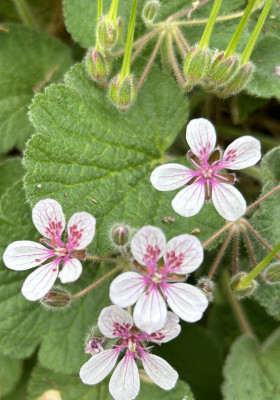 A woody-based perennial, to 30cm high, with long-stalked, apple-green, heart-shaped leaves. Flowers in clusters are white, the upper two petals spotted with purple, and borne from early summer onwards