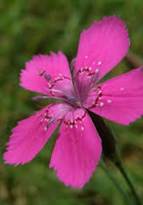 A stunning pink flower and the wild relative of many of our garden plants. The bright reddish-pink flowers have five petals and are produced in small clusters at the top of the stems from early to late summer. The leaves are hairy, dark green and slender. Once common, it has been lost from many sites and is now only found at around thirty sites in England and four in Wales. Its largest population is found in Buckfastleigh in Devon and may have been introduced by monks. It usually grows in open sites such as pastures, roadsides, field margins and, occasionally, on waste ground. It prefers slightly limey soils.