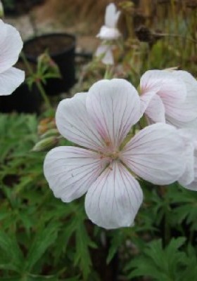 Pretty geranium with finely cut foliage and white flowers which are veined with lilac/pink. Plant in sunny or partially shaded position. Grows to approximately 45 cm.