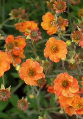 Masses of tall flower stems can be seen blowing in the breeze from May to October, with hot peach coloured flowers high above a clump of downy green leaves.