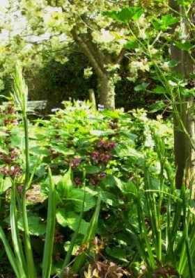 Choice clump forming perennial. Dies down completely in winter. New shoots emerge in late winter. Grows quickly and produces purplish pink flowers in late spring to summer. Grows in light shade to approximately 60 cm high.