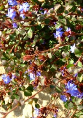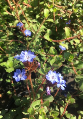 A beautiful hardy shrub that produces deep blue flowers over a long period in late summer and autumn. The leaves turn conspicuously red in late autumn. Suitable for a well drained sunny site.