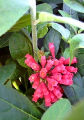 Deep rosy red tubular flowers are produced in summer on this striking shrub. An upright grower that requires a sunny site and a sheltered position. Grows to approximately 2 metres high. Can be grown in a large tub and put outside for the summer in cold areas.