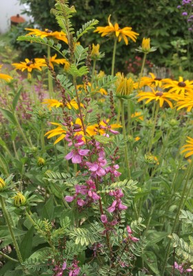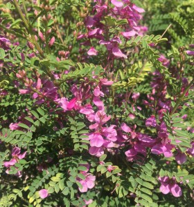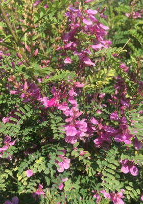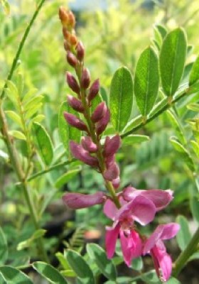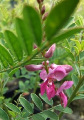 This trouble free pretty shrub seems to be often overlooked but I think it is worth a sunny place in the garden as a shrub or trained against a wall. Very attractive shrub has elegant, pinnate leaves and racemes of bright purplish-rose flowers produced throughout the summer and autumn. They need full sun and well drained soil and will grow to a height of about 1.2 metres in the open, but much taller against a wall.