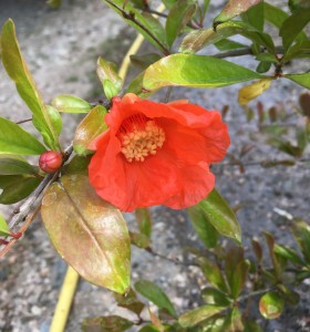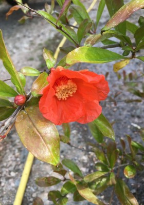 A rounded shrub with glossy, narrowly oblong leaves, bronze in spring, and very attractive funnel-shaped bright scarlet flowers 3-4cm across in summer, sometimes followed by spherical, reddish-brown fruits up to 12cm across.