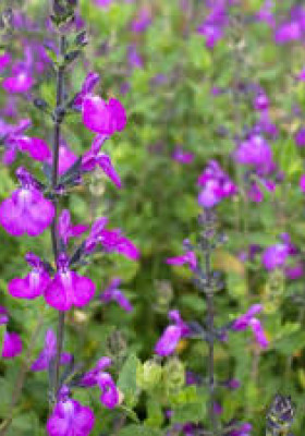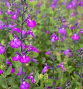 A compact perennial forming a substantial clump of erect stems bearing small, aromatic leaves and terminal spikes of purple flowers from late spring to early autumn