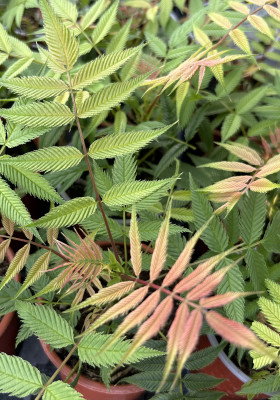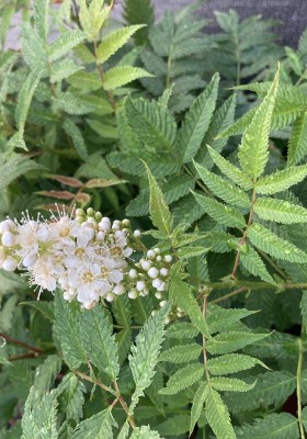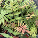 'Sem' is a small, compact selection, to 1.5m, of this thicket-forming shrub. It has many upright stems and a distinctive leaf colouring; yellow-green flushed with bright reddish-pink and bronze in spring. Leaves become greener in summer, but redden in autumn; colouring is best in good light. Flowers are borne in stiff, erect, rather narrow panicles of small white flowers in summer