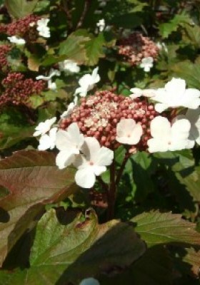 An upright habit to 2 metres. Young growth bronze complimenting the reddish buds which open to pink flushed white flowers. good autumn colour. Sunny position.